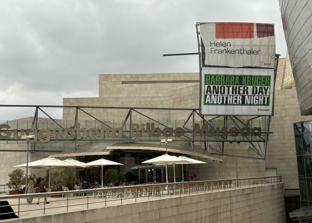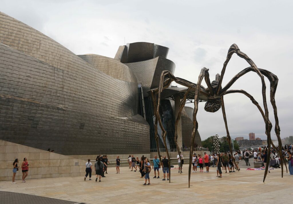 Nous avons un premier aperçu du célèbre musée Guggenheim ainsi que l’œuvre Maman (1999) de Louise Bourgeois (1911-2010), araignée géante mais aérienne incarnant une maternité protectrice.