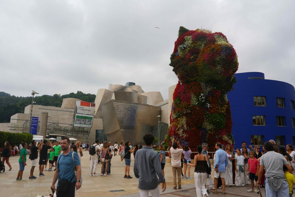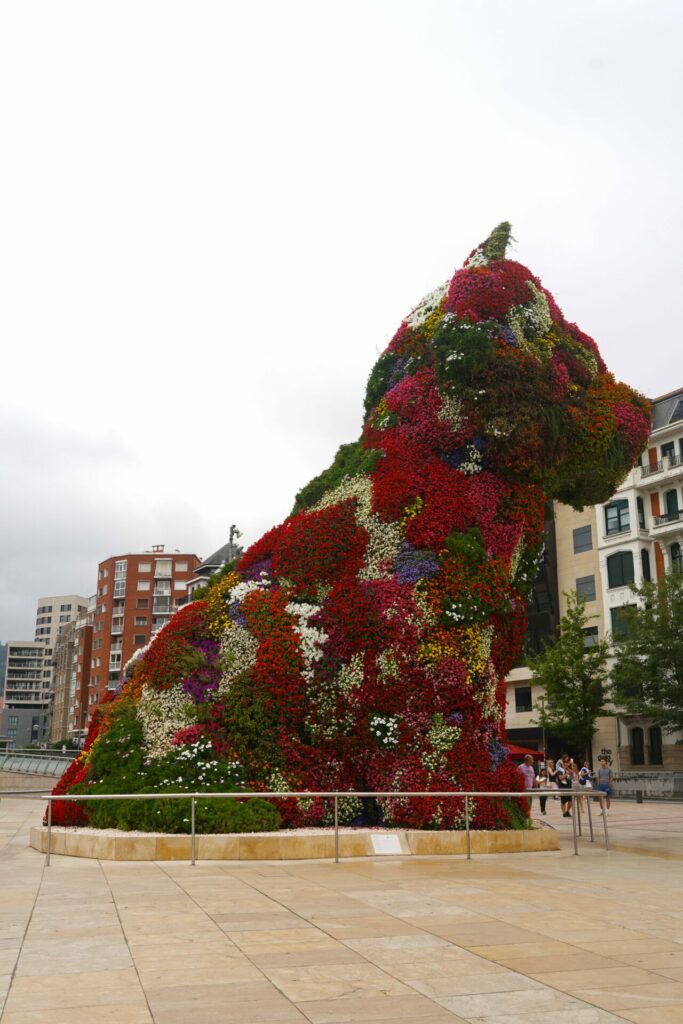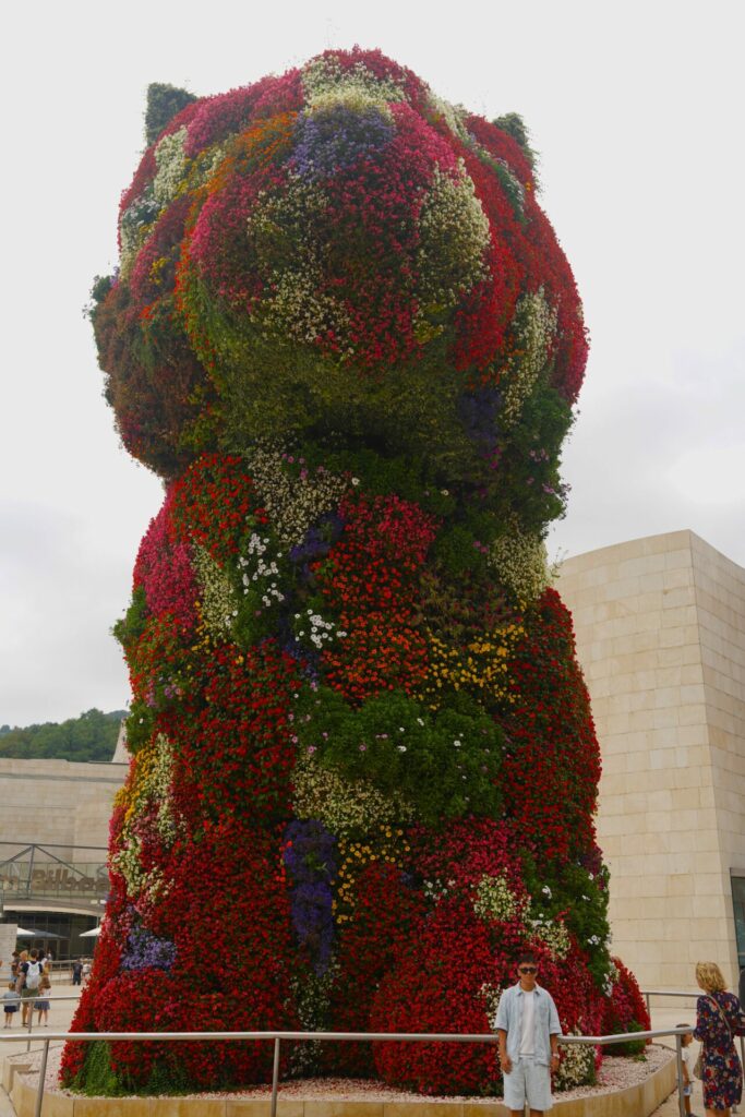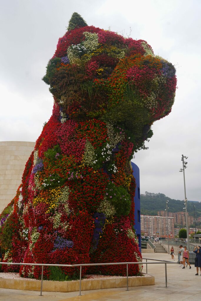 À l’extérieur côté ville, Puppy, kitschissime west wighland terrier en acier inoxydable recouvert de milliers de fleurs, se dresse du haut de ses 12 m. Bilbao s’est attachée à cette œuvre de Jeff Koons qui était à l’origine une installation temporaire.