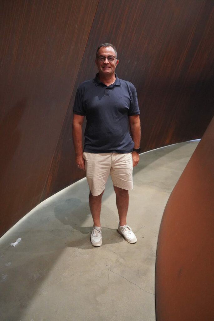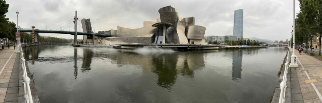 Nous faisons le tour du Musée. C’est l’un des exemples les plus surprenants de l’architecture du XXe s. : Franck Gehry a utilisé pas moins de 33 000 plaques de titane pour créer ses lignes courbes. Il partage avec New York et Venise la plus grande collection privée d’art moderne et contemporain au monde.