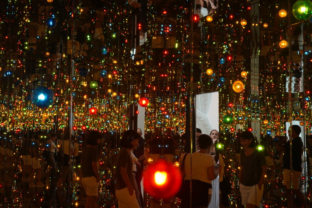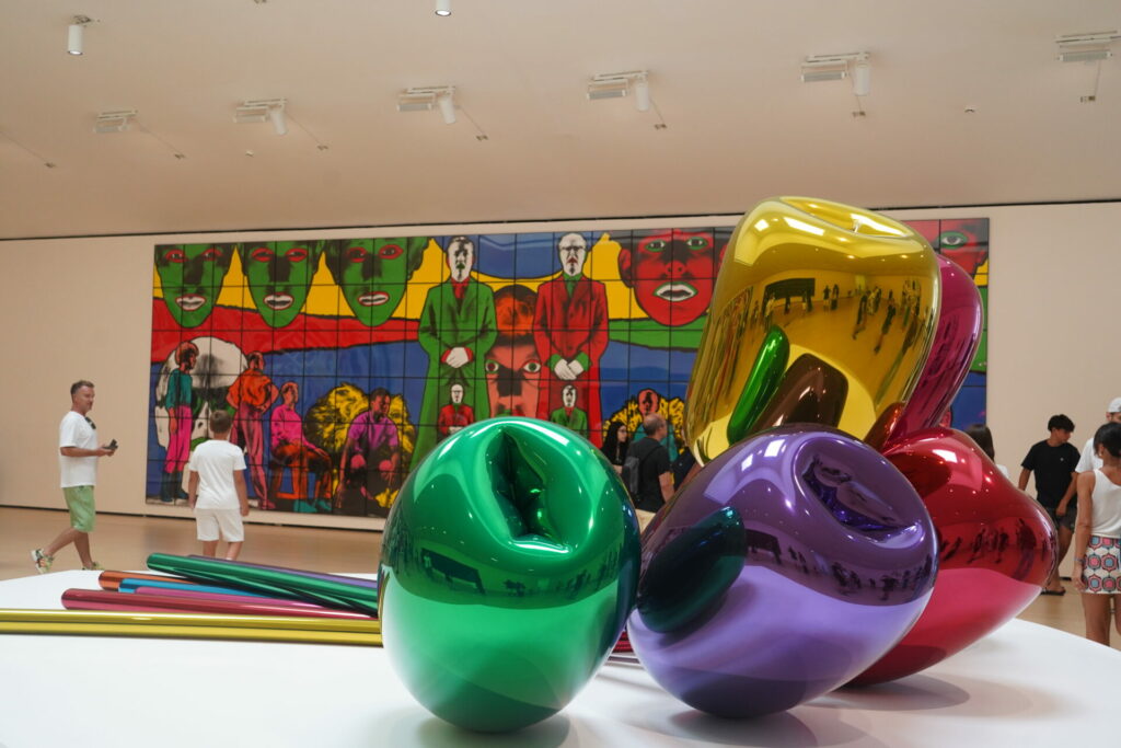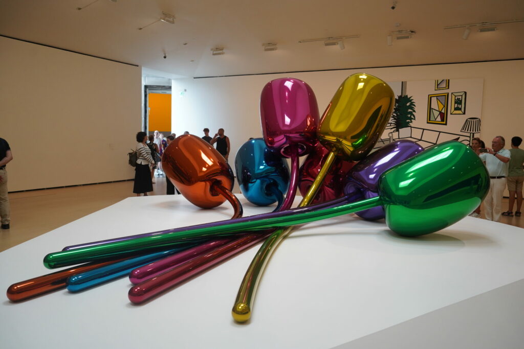 L’atrium s’ouvre sur une petite terrasse entourée de bassins où l’artiste Jeff Koons a posé son bouquet de Tulips (1995-2004) : cette œuvre ultracolorée de plus de 2 m par 5, dont les fleurs ressemblent plus à des ballons de baudruche géants, fait partie de sa grande série “Celebration”.