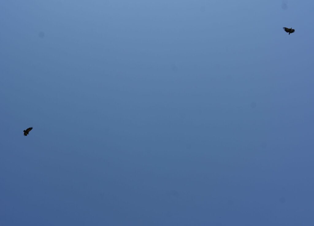 Nous traversons tout le village (on avait envie de hurler notre haine !), puis on longe un petit bois pour arriver à une petite cabane en pierre. Nous montons tranquillement mais il commence à faire chaud. Nous apercevons quelques vautours !