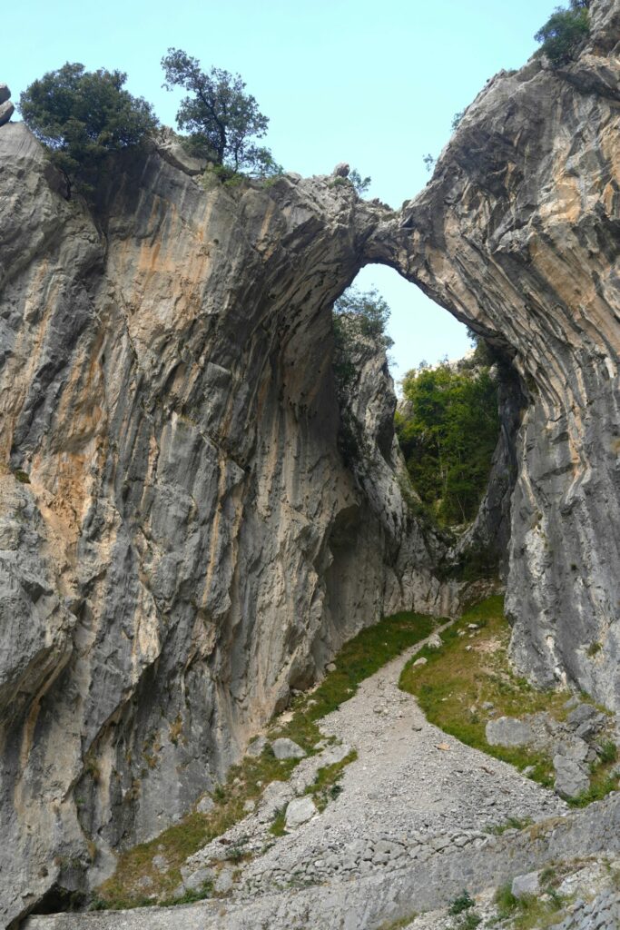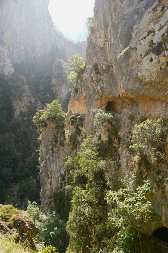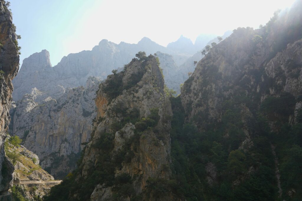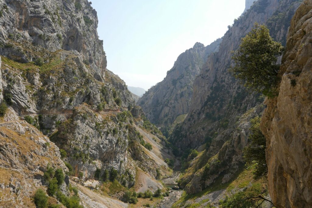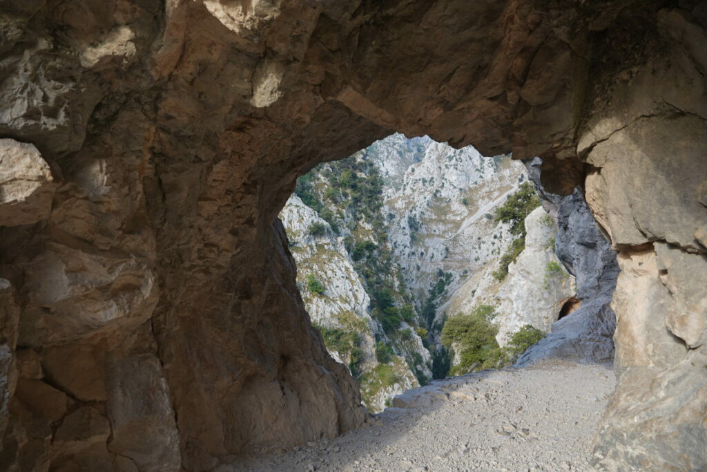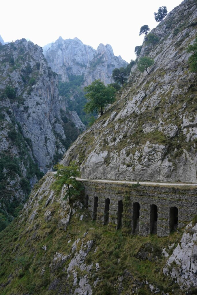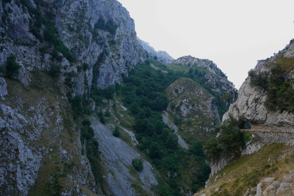 Surnommée la « Garganta Divina » (la gorge divine), cette route entre Poncebos (Asturies) et Caín (province de León, Castille-León) nous permet de marcher au milieu de montagnes qui s’élèvent à plus de 2 000 mètres au-dessus de l’imposant défilé creusé par la rivière Cares. Nous empruntons des ponts reliant les deux côtés de la gorge, nous traversons environ 70 tunnels creusés dans la roche.