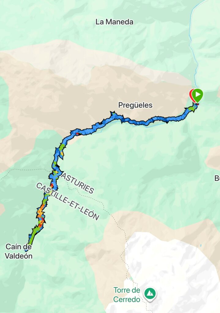 Nous traversons le pont de Bolin puis le pont de Los Rebecos (avec vue vertigineuse sur la rivière). Nous empruntons une série de tunnels bas et humides pour enfin arriver au village de Caín, entouré de montagnes de plus de 2 600 mètres.